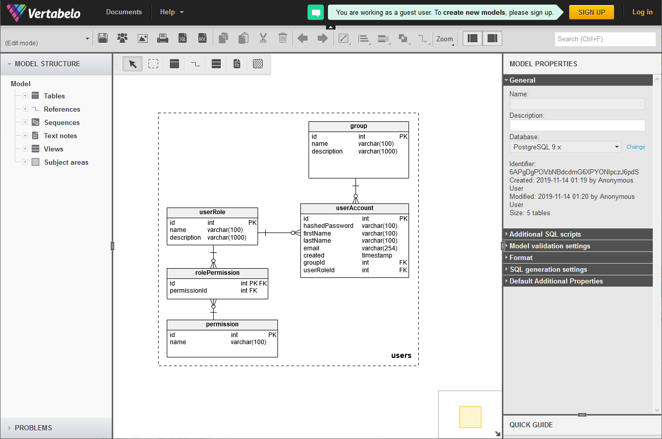 - Vertabelo Database Modeler