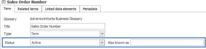 Glossary terms, like other data catalog element, can have defined custom fields.