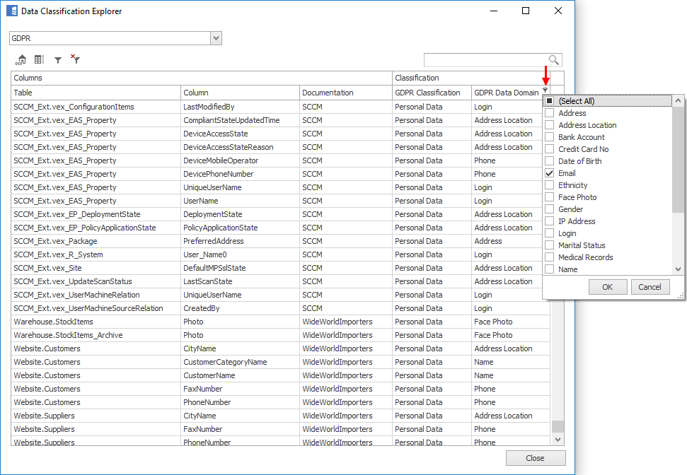 Dataedo has a report that helps you view all columns in the repository that were classified called Data Classification Explorer.