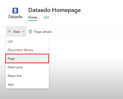 To add embed webpart to Sharepoint page go to the page you want to embed Dataedo HTML on and click the Edit button on the right sidel.