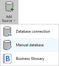 To add manual database click Add Source in the ribbon and choose Manual database option.