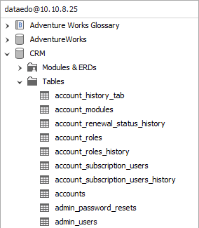This information is extracted from foreign key constraints from database schema and allows users can add manual relationships. Relationships can be created between different types of objects (tables, views, structures), and across different databases.