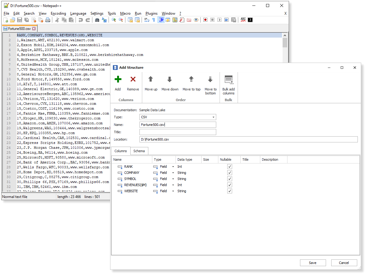 Dataedo 9.1 added support for CSV files. Dataedo scans CSV file and creates new object (Structure) with a list of columns, each containing: