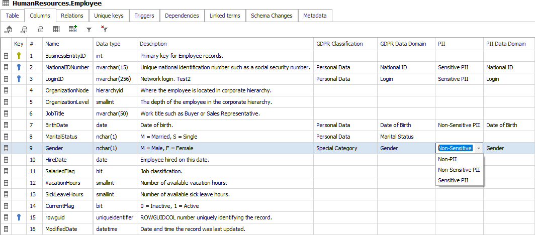 Dataedo is a great tool to discover and classify columns in your databases holding sensitive data. Classification is made with the use of labels in custom fields. Classification is browsable through both the Web Catalog and Desktop.