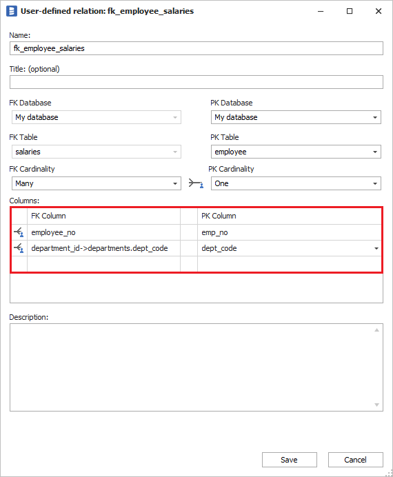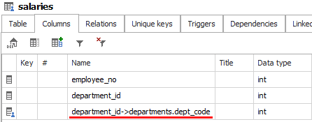 Then, you can use the new virtual column to document composite foreign key, directly to the primary table.