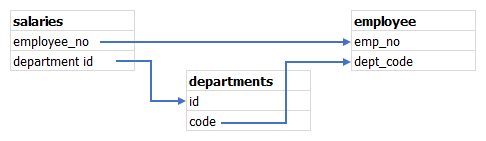 Those relationships on a diagram represent one join, not a 3 distinct joins, i.e. you need to do all three at once to link salaries table with employees table.