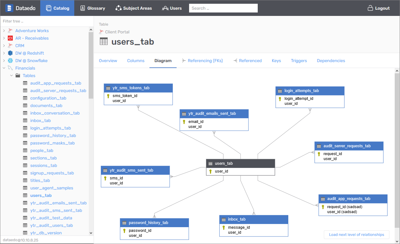 It helps your team to document them with various metadata techniques and artifacts: descriptions, aliases, unique keys, relationships between tables, aliases, custom fields, classifications, subject areas, ER diagrams, comments, rating, and warnings.