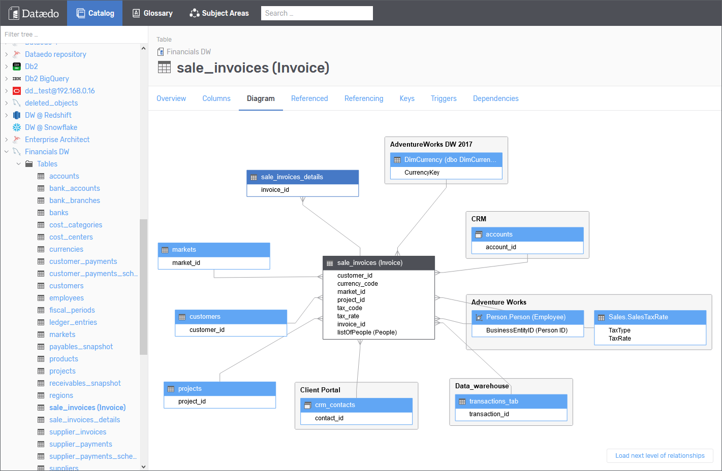 Data Lineage module allows you to manually configure and browse how data flows between your objects and data sources. Data Lineage in Dataedo contains two parts. You can design flows using Dataedo Desktop and browse diagrams using Dataedo Web Catalog.