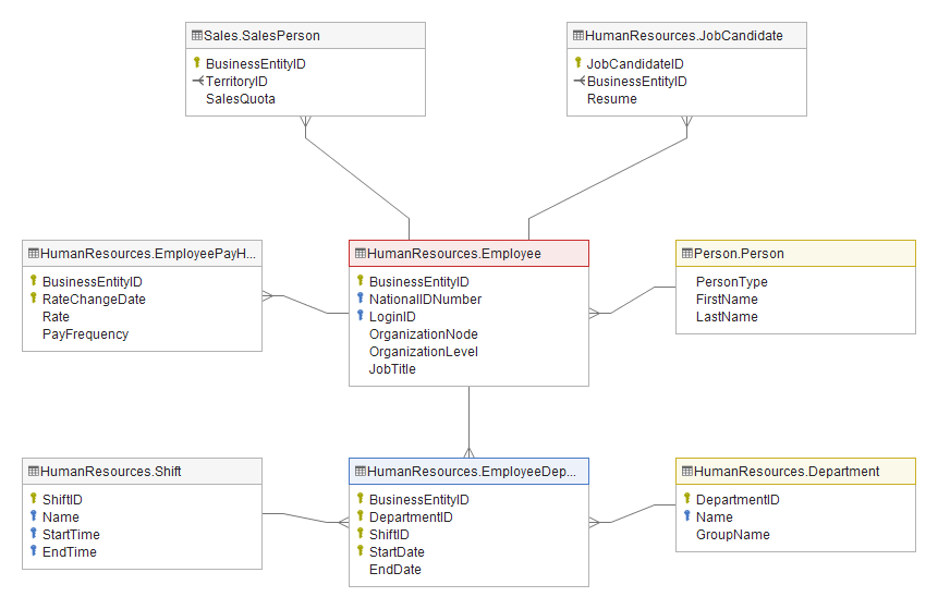 Visualize data model with ER diagrams, even if your database does not have foreign key constraints.
