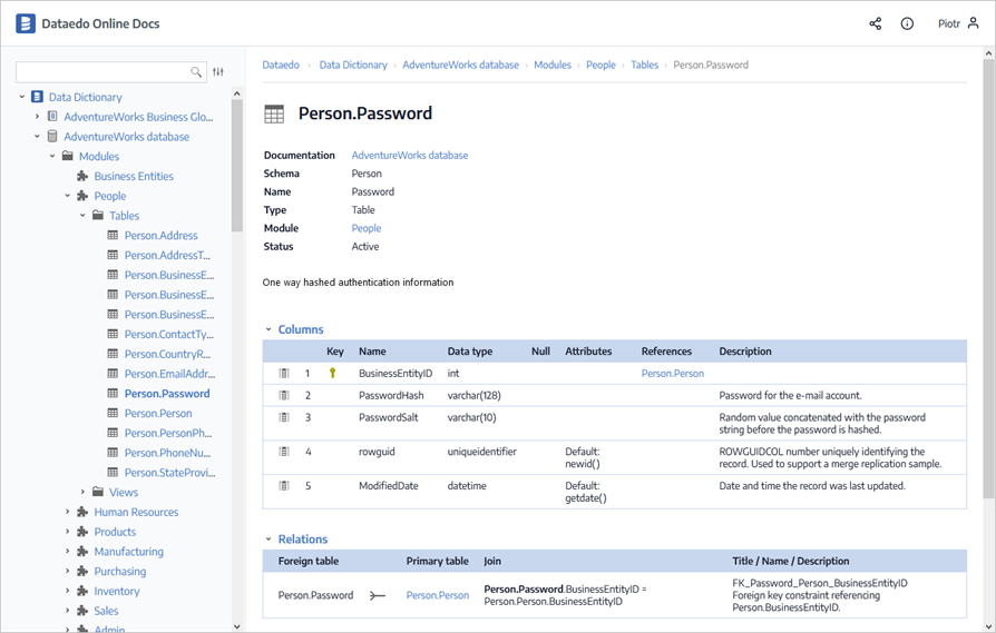With Dataedo Online Docs you can securely publish your documentation on publish.dataedo.com and provide access to specified users.