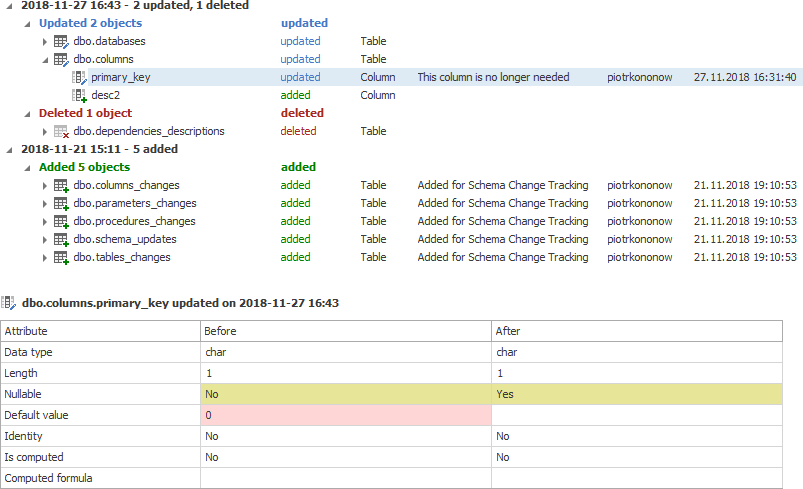 Track, analyze and comment on changes in schema of your databases.