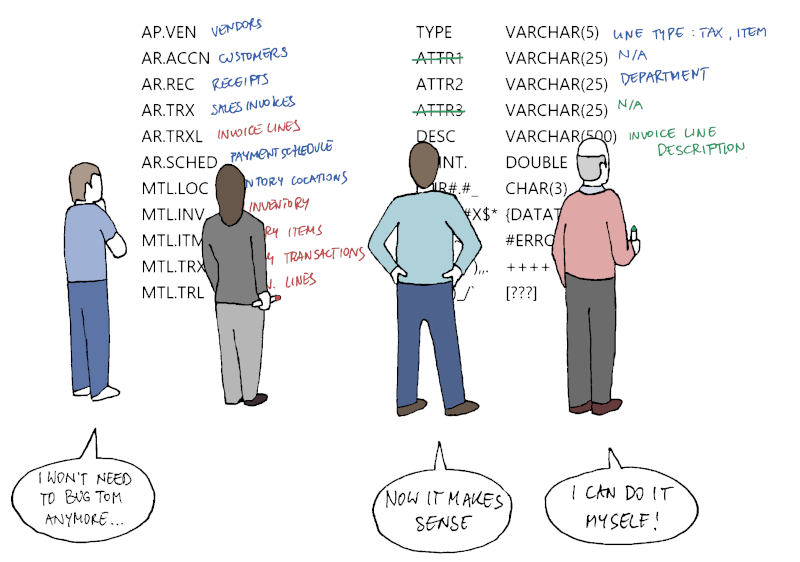 Add a layer of your organization’s vocabulary to the inadequate, confusing and generic naming in databases of packaged applications.