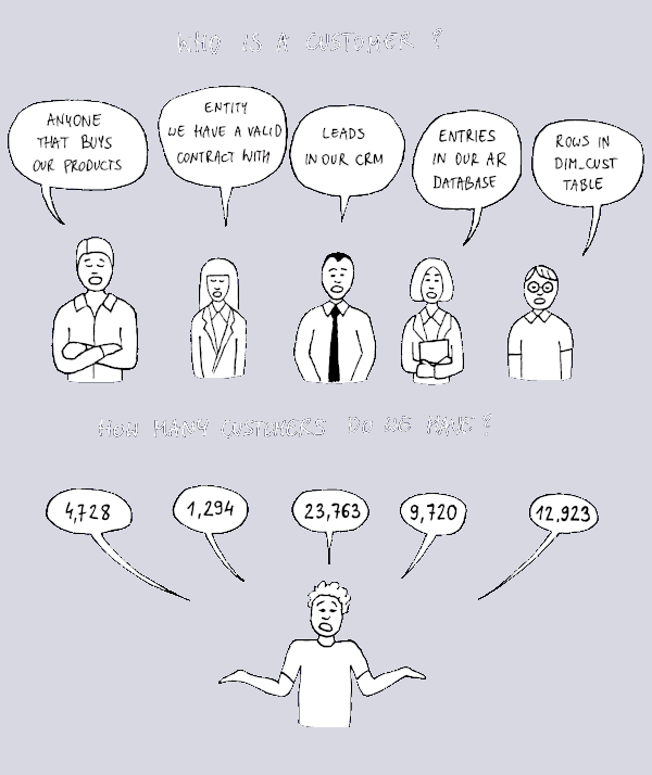 If you want to know measure something, you first need to agree on what that is. Ask different people and you’ll probably get different definitions. Define the language of your organization in a business glossary.