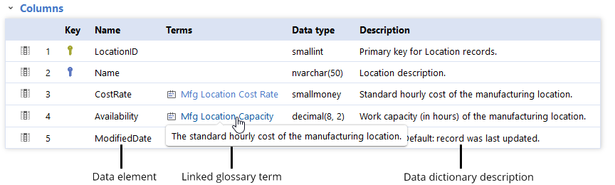 Databases can be huge and complex with thousands of tables and many more fields. With a business glossary-data dictionary links it is easy to find all occurrences of key data in all your databases.
