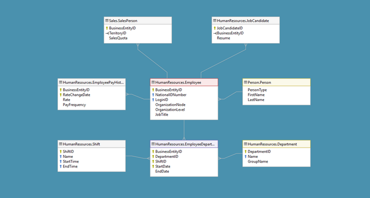 Shared repository of all data models allows you to define relationships across databases and visualize dependencies in cross database diagrams.
