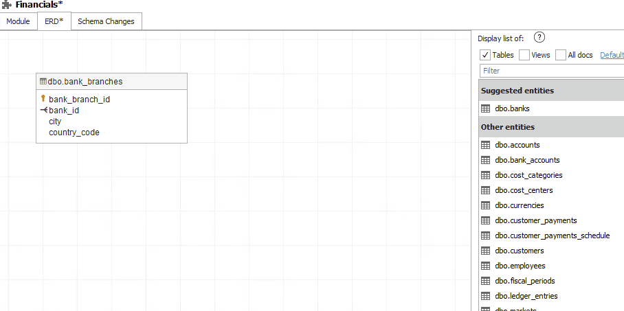 Dataedo suggests you entities that you can add to diagram next so or you can easily search the entire catalog for tables so creation of diagrams is quick and pleasant.