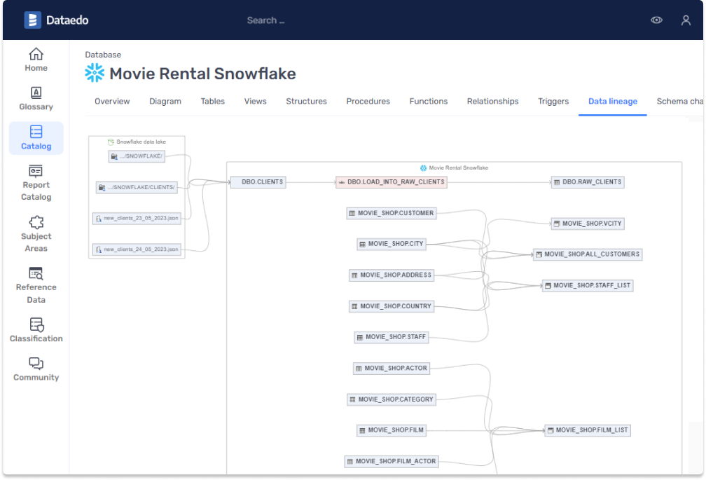 Dataedo provides additional layer to Snowflake - metadata management and documentation. It allows you to explain all your tables and columns, document table relationships, visualize the data model, and share everything with your team in convenient, interactive documentation. This makes understanding your databases and querying data easier than ever.