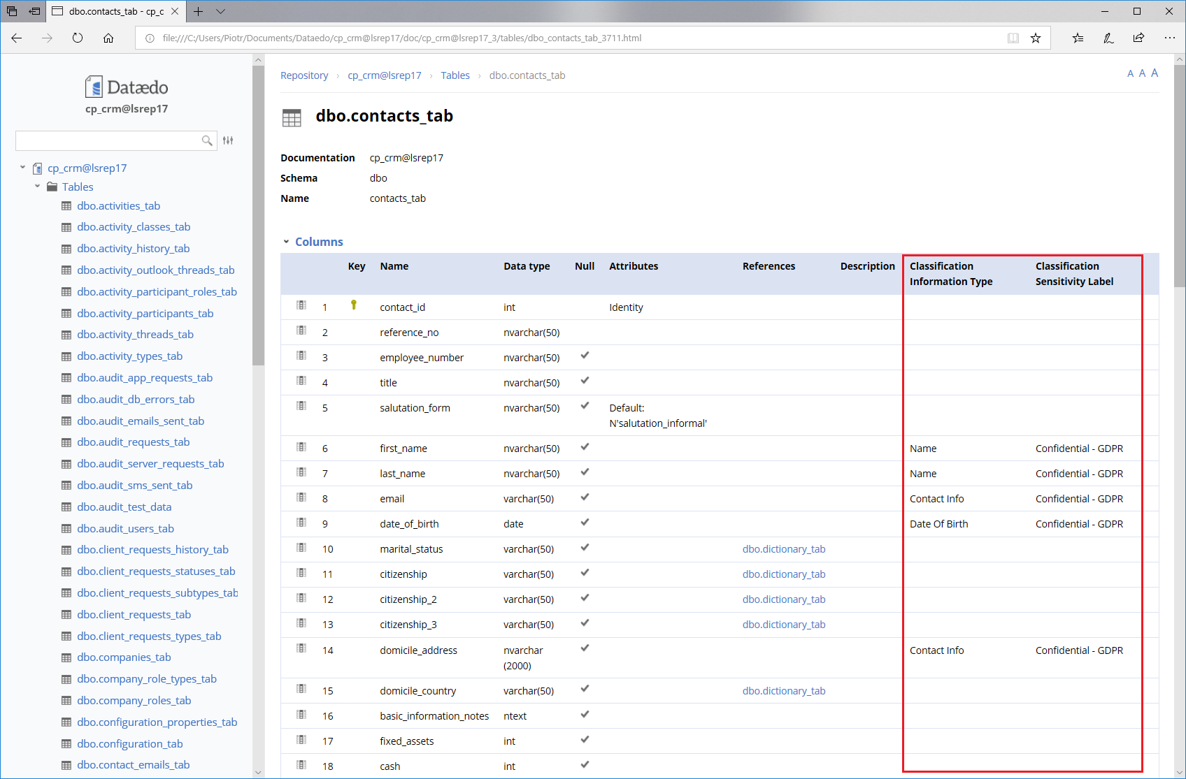 In this tutorial I will show you how you can import this metadata into Dataedo repository, browse classification labels, search for columns and share this information in HTML, PDF or Excel.