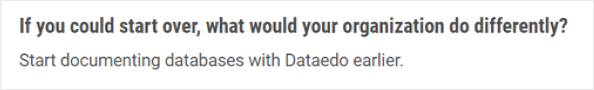 "We jump started all of our Data Governance efforts using the tool. We documented key databases quickly and easily and published the information to our analyst community."